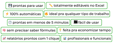 Chega de perder horas tentando criar planilha do zero ou caindo em modelos que não funcionam.